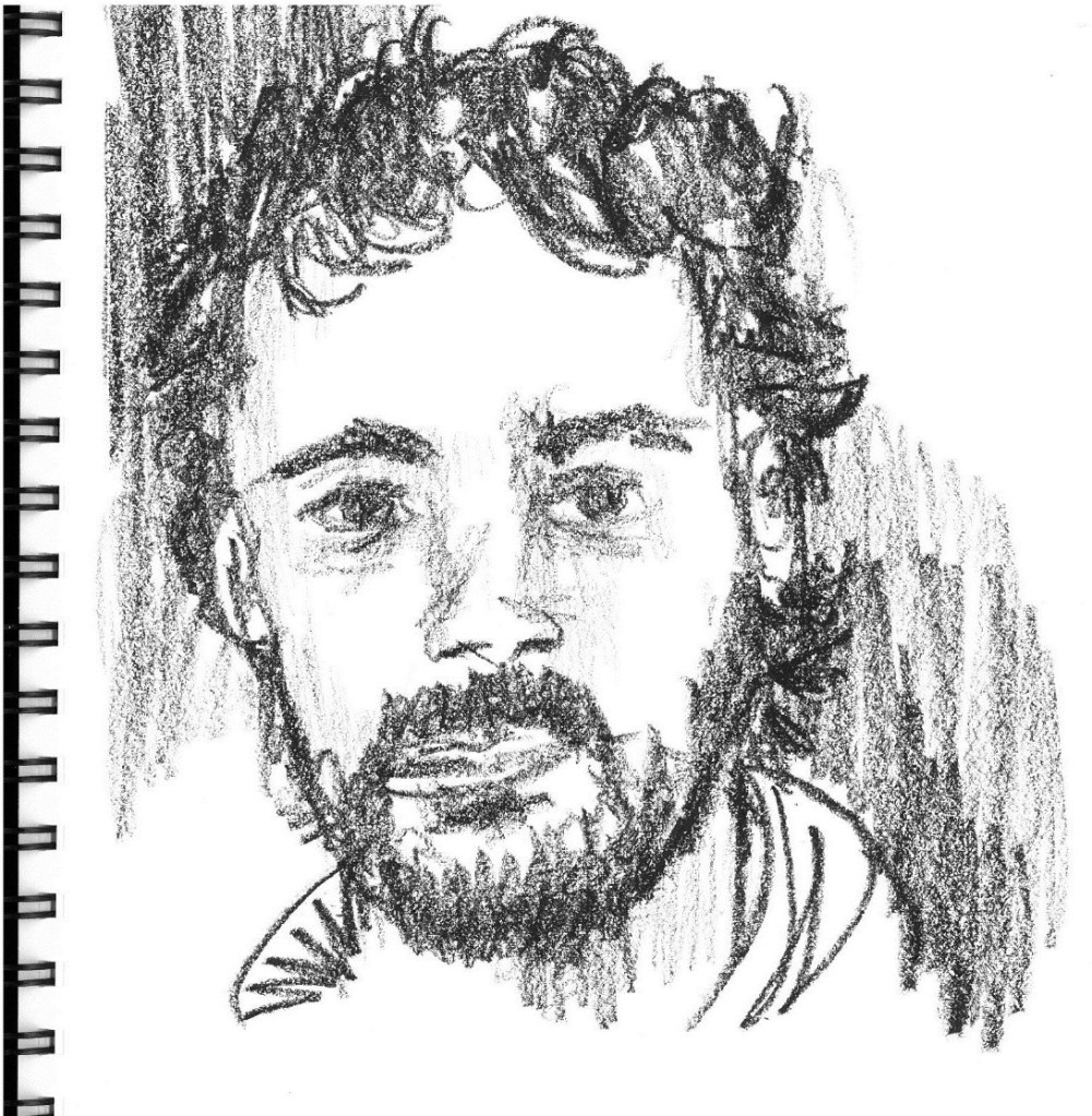 With these two portraits I was trying to produce a very quick but accurate likeness of my subjects, and to achieve this goal I chose to use either conté or grease pencil.