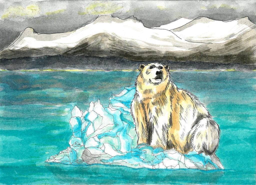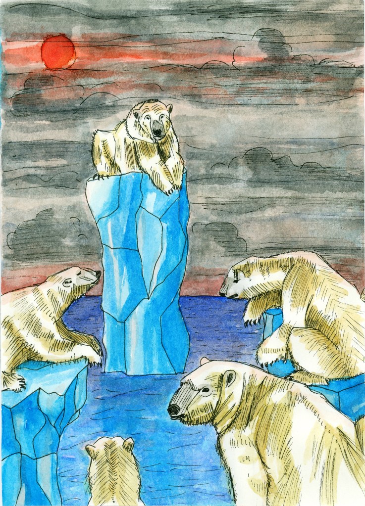 There is a story cooking behind these polar bear paintings. Each image leads into a chapter of the story but for now the tale sits on the back burner of my mind.