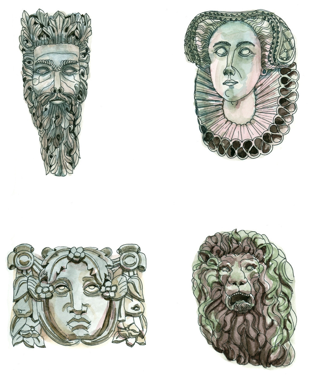 This next subject is the stunning stonemasonry found around the city of Halifax. In Stone Faces of Halifax, I set out to draw four stone faces from four separate buildings or structures in the South End of the city. Three of those faces (Foliate Head, Mary Queen of Scots, Lion) were the work of the talented Scottish born stonemason George Lang (1821-1881). The fourth face was designed by Canadian architect John Lyle (1872-1945).