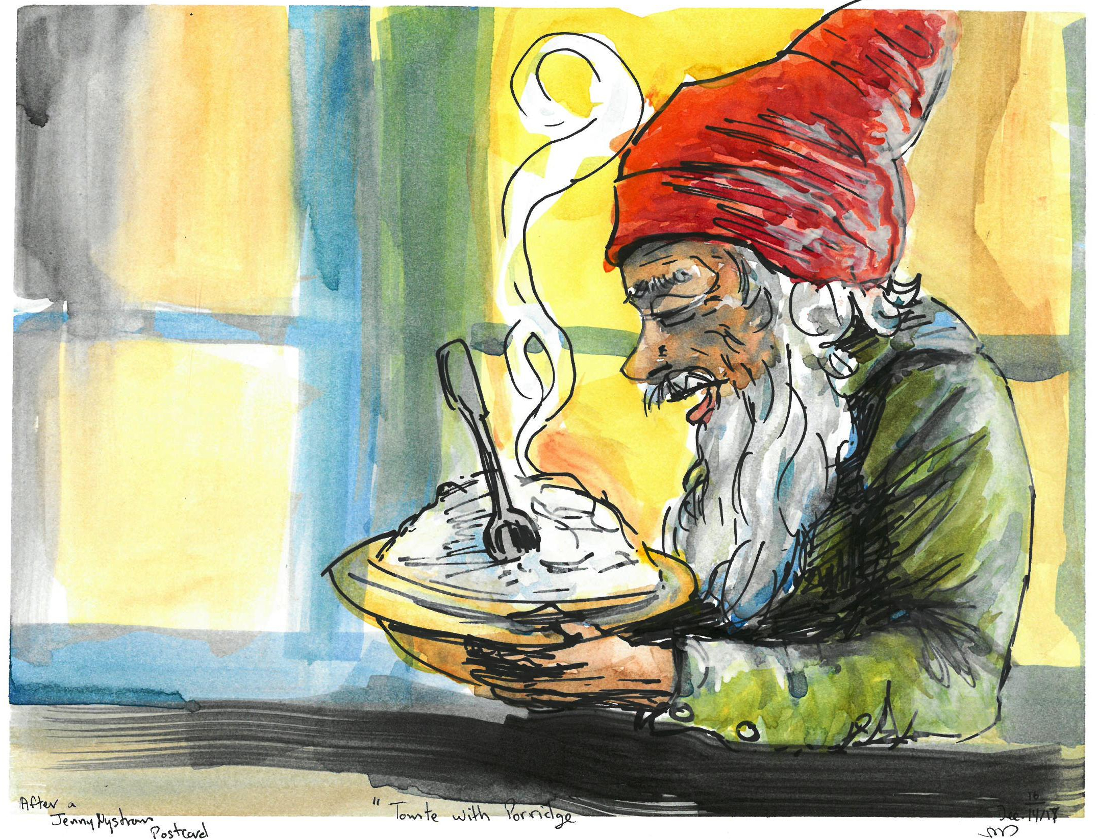 In early December 2016, Tomtens invaded the house. Not literally; there were no small gnome-like creatures running amok in the days leading up to Christmas, but we did become fascinated with the little people. My youngest, who has always been a huge fan of Astrid Lindgren and Harald Wiberg’s book The Tomten, asked if we could leave out a bowl of porridge with butter for our house Tomten (a test to see if we did indeed have one in the house) and sure enough most of the porridge was eaten!